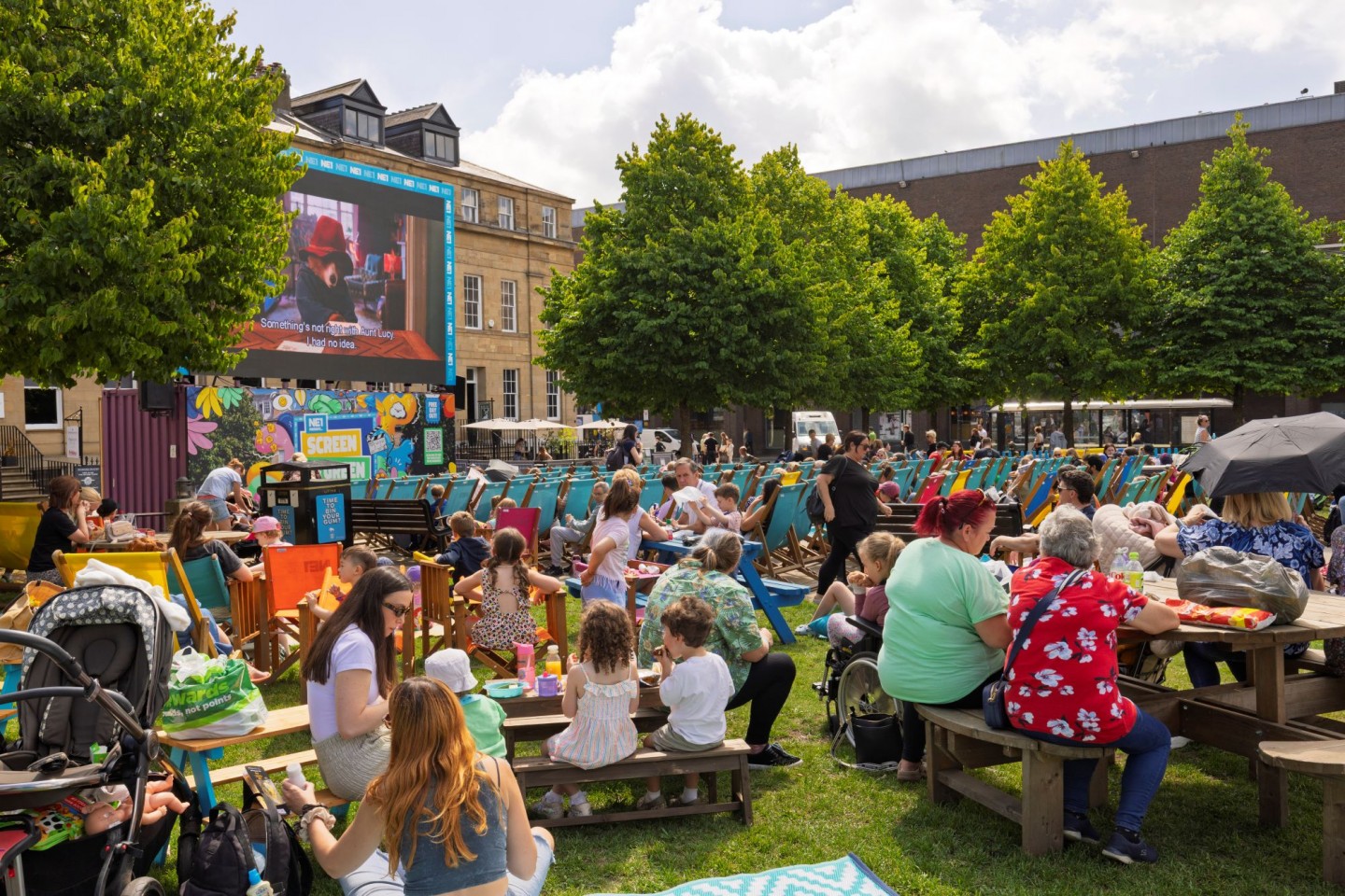 Alongside the large outdoor screen, NE1 has designed interactive play elements to complement the free films. These activities provide free, fun activities for families, visitors, and workers in the city, increasing footfall, supporting city centre businesses, and encouraging people to stay longer and return more often.